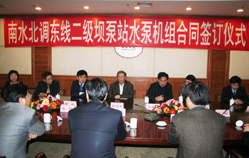 新聞中心 3月12日,南水北調(diào)東線一期工程二級(jí)壩泵站簽字儀式在山東省濟(jì)南頤正大廈隆重舉行;山東省水利廳領(lǐng)導(dǎo)、淄博市領(lǐng)導(dǎo)及荏原博泵李正民副總帶隊(duì)參加了簽字儀式。荏原博泵在南水北調(diào)主線泵站中標(biāo),標(biāo)志著我公司大型泵的制造將有新的突破。