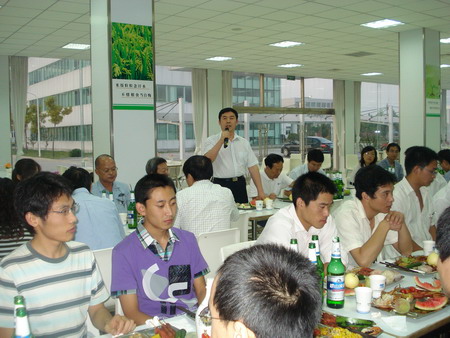 2008年9月12日晚,公司總經(jīng)理孫龍平、常務(wù)副總經(jīng)理志賀進(jìn)等公司領(lǐng)導(dǎo)與80多名家在外地的中日員工歡聚一堂,共度中秋佳節(jié)。