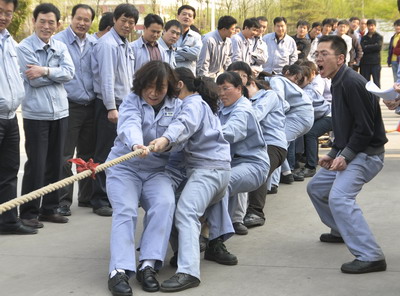 4月30日下午3:30,公司工會舉辦的“第四屆”慶五一拔河比賽正式開始。來自各基層分會的八支男隊、4支女隊共12支隊伍進(jìn)行了比賽,比賽中隊員們充分發(fā)揮團隊意識,勁往一處使,隨著“加油、加油”的號子聲,你來我往,互不相讓。觀戰(zhàn)的員工比參賽隊員還著急,起勁的喊著“加油”,為隊員們吶喊、助威。場上氣氛熱烈,充分展現(xiàn)了荏原博泵員工勇于爭先,不甘落后的精神風(fēng)貌。