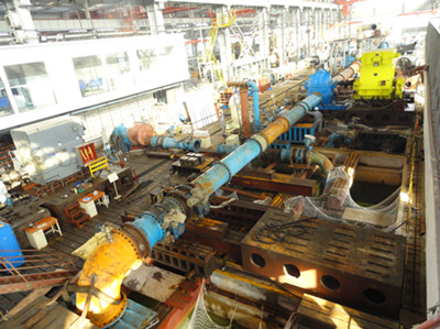 1000cm×900cm的大型臥式雙吸離心泵測(cè)試現(xiàn)場(chǎng)