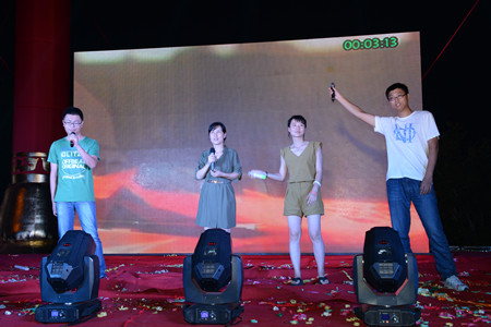 17:50分,隨著音樂慢慢響起,四位晚會主持人:霍宏越、劉萌、李麗子、董漢峰,以獨特新穎的方式亮相舞臺,拉開了晚會的序幕。